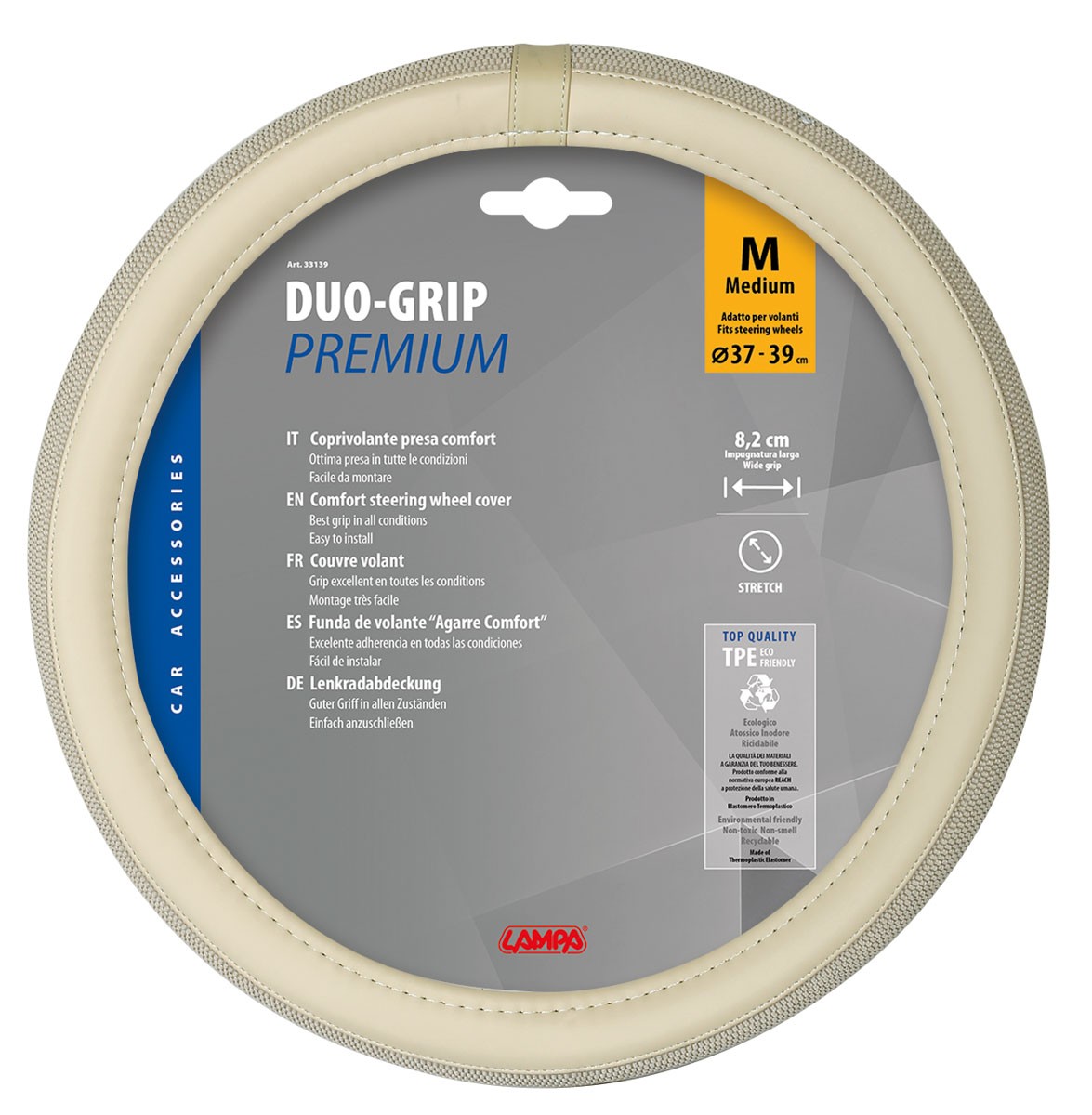 Coprivolante in morbidissimo Skeentex beige. Adatto per volanti auto con diametro Ø(37-39)cm, impugnatura larga da 8,2cm e presa confort.